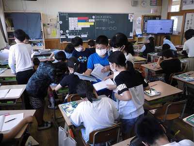 令和4年6月24日(金)、6年生に引き続き5年生もペッパー君を制御するプログラミングについての学習を行いました。