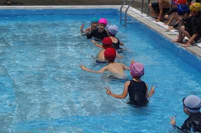 最初は冷たいだの虫がいるだの、怖々と水に入っていましが、慣れてくると得意な子も苦手な子も楽しそうでした。3年生は初めての大プールでしたので、水位を下げていましたので、逆にプールからプールサイドに上がるのを苦労していました。(笑)