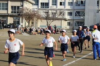 体育の授業や業間で行った風の子タイムで練習を重ねてきた子どもたち。どの子もやる気に満ちあふれた表情でスタートを切り走り出しました。途中、苦しい表情を見せる時もありましたが、沢山の友だちや保護者のあたたかい声援、一緒に走ってくれた先生方の励ましを力にかえ、無事に完走することができました。