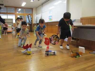 昨日、生活科の時間に2年生が1年生をおもちゃランドに招待しました。2年生が作った手作りのおもちゃを使って、遊び方を説明したり、遊び方を見せたりして、1年生が楽しそうに遊んでいました。2年生がお兄さんお姉さんに見えました。