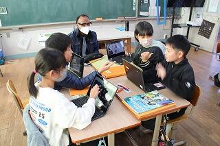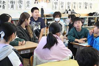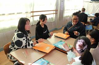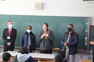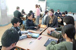 5年生、6年生の外国語の時間に市内のALTの先生が5名来校されました。