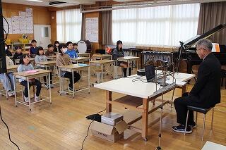 校歌斉唱です。音楽室からピアノ伴奏を流し、各教室で歌いました。