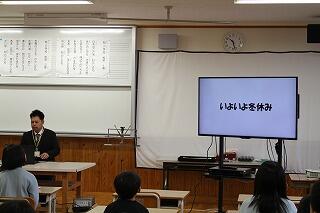 2学期に頑張ったことのなかで、運動会では、「自分も頑張る、みんなで頑張る」ことができましたね。また、冬休みは元気に過ごして、1月7日にみなさんと会えることを楽しみにしています。