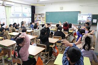この教室には「〇〇サンタ」が登場していました。友達を紹介するクイズに挑戦していました。友達のことをまた知ることができて、「へー、そうなっちゃ。」などの声も聞こえてきましたよ。クイズに正解すると、何やらお楽しみがあったようでした。