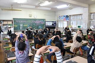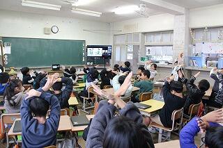 約束やきまりについて旭っ子みんなで確認です。先生の問いかけに〇や×でサインを送っていました。