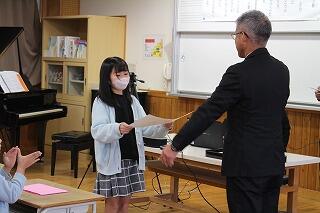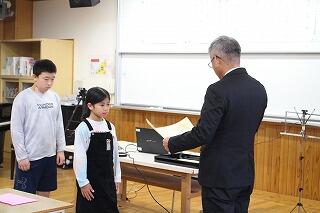 最後は、表彰です。作文や図画、スポーツ少年団等で活躍した児童へ賞状やメダル、トロフィー等を校長先生から授与していただきました。