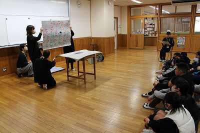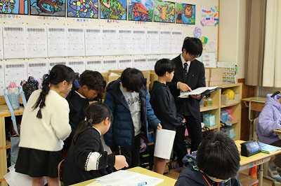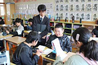 東京の大学から、大学生がインターンシップで、本校に見えています。9月にも来ていただいた方です。2週間の予定で、各クラスで授業や給食指導、清掃指導などのお手伝いをして頂いています。子どもたちも色々なことを質問したり、話したりしています。