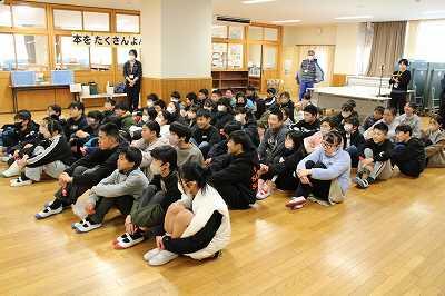 今朝、本校の「むいくまむ」の方々による6年生を送る会(読み聞かせ)が行われました。大型紙芝居「スイミー」と朗読の2つでした。6年生は真剣に聞き、最後にお礼の言葉を述べました。「むいくまむ」の皆様、いつもありがとうございます。