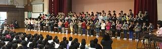 旭小学校からは、4年生が代表として参加し、合唱「未知という名の船に乗り」と合奏「宇宙戦艦ヤマト」を発表しました。