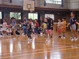 まず、各学級代表の子どもたちが短縄模範演技を披露しました。縄を巧みにあやつり、どきどきしながらも一生懸命に跳ぶ様子が見られました。子どもたちからは、「がんばれ!」の応援や「すごいな。」という歓声が沸き、大変盛り上がりました。