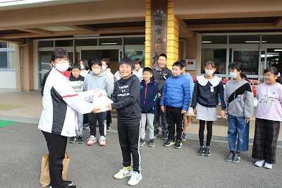本校の運営委員会(5、6年生児童で構成)が、全校児童に「赤い羽根募金」を呼びかけました。そして集まった募金を本日、延岡市社会福祉協議会へ託しました。盲導犬の啓発活動や延岡市の各種ボランティア団体の活動に活用されるそうです。