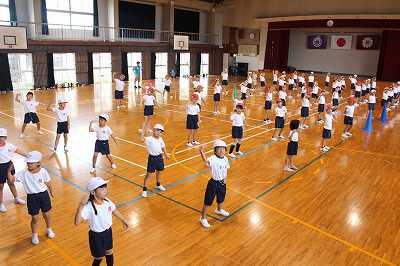 今朝、運動会の全体練習を1~6年生全員で行いました。よい天気で、運動場で行いました。開会式や1年生の徒走の時の係活動の確認、エール交換の練習等を行いました。子どもたちの元気な声が響いていました。