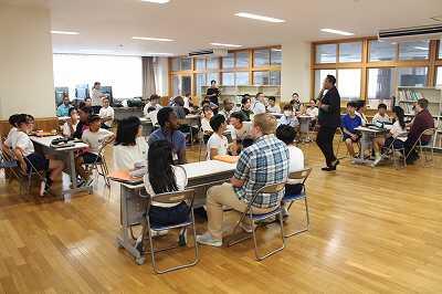 本日、延岡市のALT(外国語指導助手の先生方)が、本校に集合して、研修を行いました。5、6年生と英会話をしたり、1~6年生の全教室に分散して給食を食べたり、昼休みに一緒に遊んだりしました。子どもたちはALTに積極的に話しかけ、コミュニケーションをとっていました。