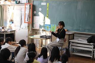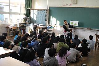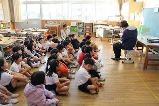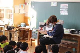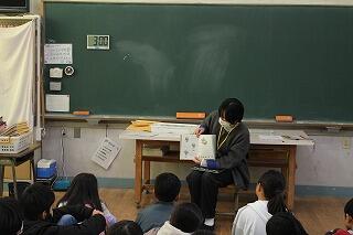 最後は、1年生の教室です。静まりかえって絵本の世界に聞き入っていました。