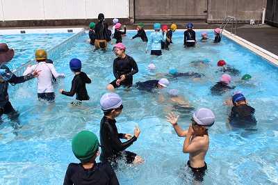 本日、5年生(2校時)と1年生(3校時)と3年生(4校時)がプール開きを行いました。子どもたちの歓声が聞こえていました。特に、1年生は小学校で初めてのプールで、3年生は大プールに入るのは初めて(2年生までは小プール)でした。これからの水泳学習も、楽しみです。