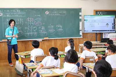 3年生が算数の時間に、ひき算の筆算の学習をしていました。321-185のように、3桁の数字で、くり下がりが2回ある場合の計算です。ポイントはくり下がりです。根気強くがんばっていました。