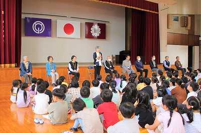 今朝、はげまし隊のみなさんとの対面式を行いました。本年度は、5月7日から、2~6年生の算数の時間を中心に、家庭科や理科等にも加わっていただく予定です。隊の皆さんの自己紹介や6年生代表児童によるあいさつ等を行いました。本年度もよろしくお願い致します。
