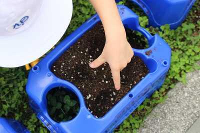 1年生が、生活科の時間にアサガオの種まきをしていました。植木鉢に土を入れ、指先で4つの小さな穴を空けて、アサガオの種を植えていました。最後に水をあげていました。これから観察が始まります。芽が出るのが楽しみですね。