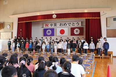 本日、5年生と6年生で、卒業式の予行練習をしました。卒業式の本番どおりにやってみました。前回の練習の時よりも、間違いが少なくなっていました。卒業式当日まで約2週間となりました。