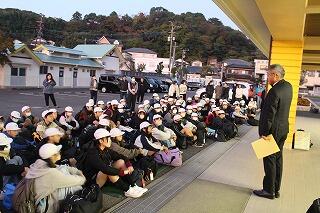 朝早く登校し、健康観察を済ませると、いよいよ出発式です。