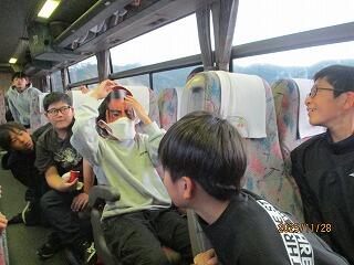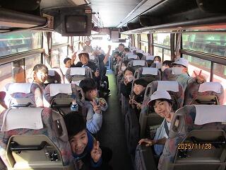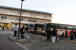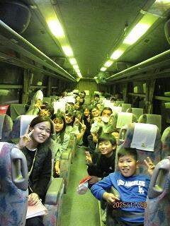 トイレ等を済ませ、クラスごとにバスに乗り込みました。出発予定の午前7時には、家族の皆さんや先生方に見送っていただき、出発です。