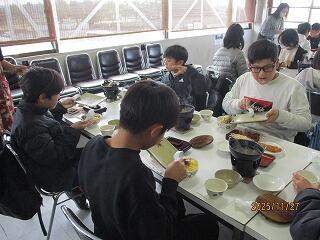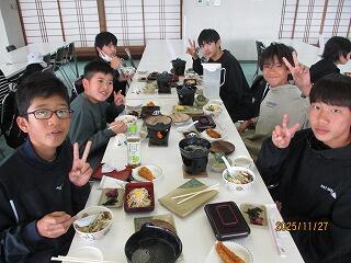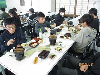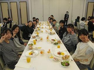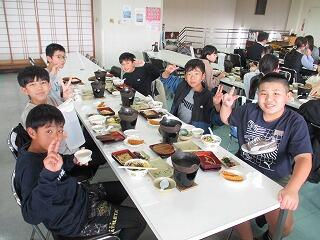 2日目の朝食は、洋食です。フォークやスプーンが両脇に並べられたテーブルに座ると、「結婚式みたい。」「新郎・新婦はいつ来るの?もう食べ終わっちゃうよ。」と笑顔で話していました。かわいい旭っ子です。
