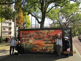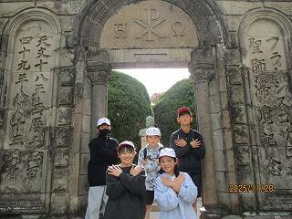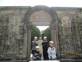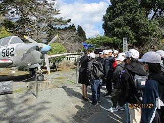 昼食後は、徒歩で知覧特攻平和会館へ移動しました。途中、復元戦闘機や特攻平和観音堂、三角兵舎を見学しながら進みました。