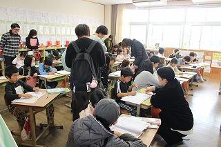 この3日間、子どもたちはそわそわした気持ちで過ごしています。なんてたっておうちの人が授業を見に来てくれるからです。各教室を回っていくと、人の気配を感じるとついつい、そちらを見たくなるんですね。そっと教室は行っても視線を感じました。