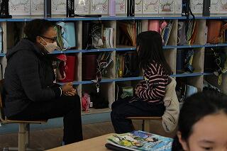 いつも来てくださる先生とは、とても仲良しで給食の時間や昼休みの交流もとても活発です。