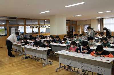 本日、外部講師をお招きして、3年生がそろばんの勉強をしました。講師の先生は、以前、4年生にもそろばんを教えて頂いたそろばん名人の先生です。3年生の多くの児童は、初めてそろばんを使うようですが、小さな指でそろばんの珠をはじきながら、たしざんやひきざんの計算を一生懸命にしていました。