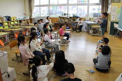 外国語や外国語活動の授業で、「伝える」ということに重点を置いて、学習を展開しています。今回、3年生は、他の学年などへの「英語による物語の紹介」にチャレンジしました。6年生は、中学校の英語の先生をお招きして、「中学校でがんばりたいこと」を英語で聞いていただきました。どちらの学年の児童も緊張していましたが、上手に「伝える」ことができていました。
