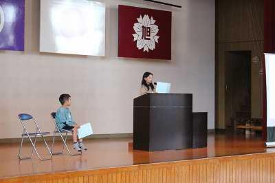 本日、1年生を迎える集会を行いました。1年生入場の後、2年生から6年生が順番に、旭小学校のこと(勉強や休み時間、昼休み等)を紹介する発表をしました。最後に1年生がお礼として、1年生全員で歌を歌いました。