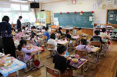 コロナ禍なので、給食室の中に聞こえるように、大声で感謝の気持ちを伝えることができません。そこで、本校では一人一人無言でおじぎをするようにしています。