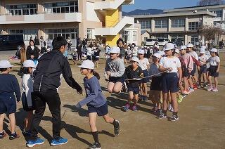 体育の授業や業間で行った風の子タイムで練習を重ねてきた子どもたち。どの子もやる気に満ちあふれた表情でスタートを切り走り出しました。途中、苦しい表情を見せる時もありましたが、沢山の友だちや保護者のあたたかい声援、一緒に走ってくれた先生方の励ましを力にかえ、無事に完走することができました。