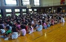 校長先生の話では、各学年の取組やがんばったことの紹介があり、みんなで1学期を振り返りました。児童代表の発表は、1学期がんばったことや2学期のめあてについてでした。1学期各学級から1名、特に努力したことのある子どもに努力賞が渡されました。コンクールやスポーツの試合で活躍した子どもも表彰されました。最後に、生徒指導主事からは「火・水・車・人・お金」に気を付けて、安全な夏休みの過ごし方について指導しました。