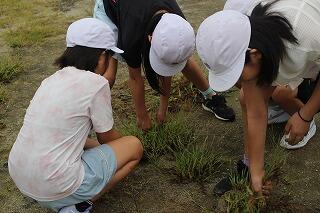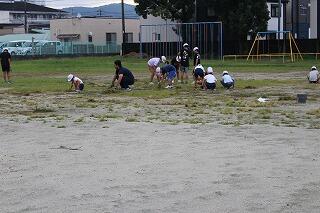 2学期が始まってから、朝の運動場には子どもたちが出てきて、トラックやフィールド内の草取りに取り組んでいます。