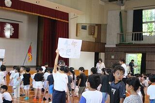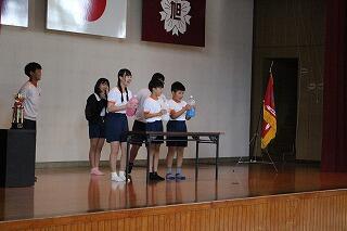 9月19日(金)朝の時間に体育館で運動会の結団式を行いました。
