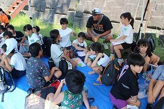 まずは、ひむか感動体験ワールドの成﨑さんと須美江で漁師・民宿をされている解散から感動地引き網漁のしくみや網の引き方、危険な魚の紹介等を聞きました。