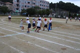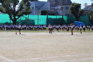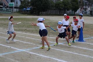 みんなしっかりバトンをつなごうと真剣な表情で頑張っていました。