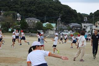 10月3日の朝は、第1回目の対団リレーの練習です。