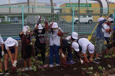 令和4年11月2日(水)、2年生が芋掘りをしていました。大きいの小さいの、ザ・サツマイモという形、変な形、いろいろな芋を楽しそうに収穫していました。