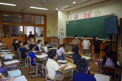 平日の午前中の参観日ですが、さすが旭小の参観率が高いですね。暑い中、たくさんの保護者の皆さんに来ていただきました。コロナがなければ、もっと子どもの近くで参観してもらえたのですが・・・。