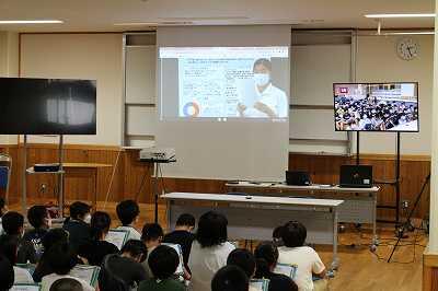 令和4年7月21日(木)の午後、6年生と宮崎南高校の生徒がオンラインで交流を行いました。