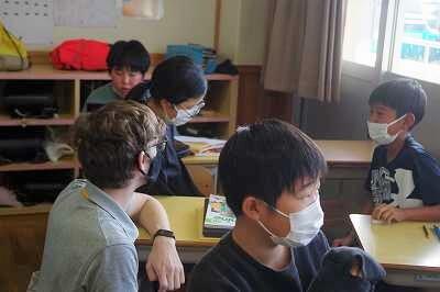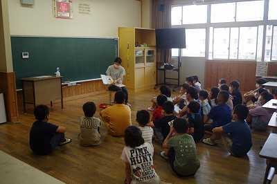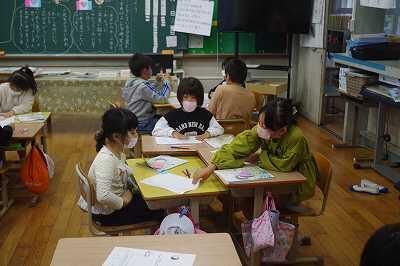 一緒に「ととろ三人の会」の方々の読み聞かせを聞いたり、各学級に入って一緒に学習したりしながら楽しく交流し、あっという間に時間が過ぎていきました。