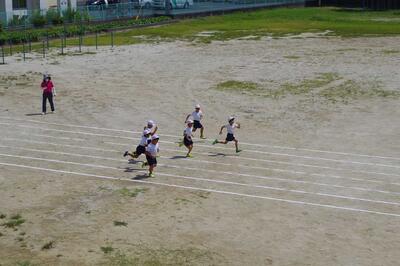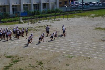 2学期が始まって数日、体育では運動会に向けて、少しずつ「かけっこ」になれていく取り組みをしています。夏休み明けに、急に全力で走ると怪我や熱中症が怖いですので、軽く流して走ったり回数を減らしたりしています。