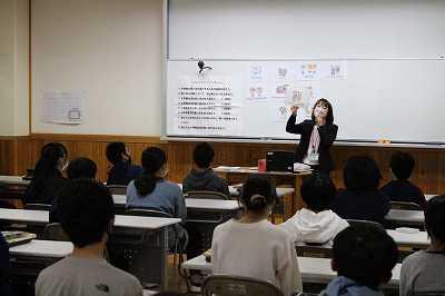 2年生は、ワイワイテレビのアナウンサーに来ていただいて、日本語の音の高さ、アクセントなどのことを教えていただきました。↓