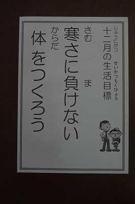 また、担当の先生から、12月の生活目標である「寒さに負けない体をつくろう」に関連する話がありました。