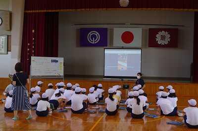 令和4年7月12日(火)、3時間目に、県総合政策課企画担当に方に来ていただいて、6年生全員で宮崎県の課題やゆたかさ指標等についてお話を聞き学びました。後半は、今月の参観日に行う予定の発表を、代表の一人分を聞いていただいて、いろいろアドバイスのコメントをもらいました。最後に、代表が素晴らしい謝辞を述べ、本日の学びを修了しました。講師の方からは、課題意識が高く素晴らしい子どもたちですねとお褒めのことばをいただきました。
