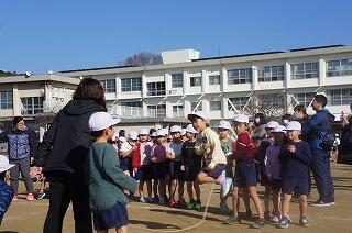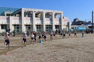 体育の授業や業間で行った風の子タイムで練習を重ねてきた子どもたち。どの子もやる気に満ちあふれた表情でスタートを切り走り出しました。途中、苦しい表情を見せる時もありましたが、沢山の友だちや保護者のあたたかい声援、一緒に走ってくれた先生方の励ましを力にかえ、無事に完走することができました。