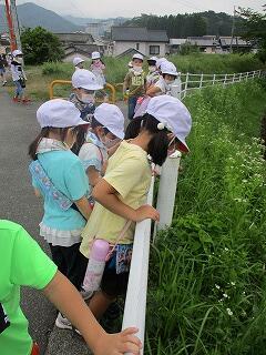 途中、ツバメの巣を見つけたり、花をつんだりしながら、学校のまわりの自然を十分に楽しみました。また、郵便局や鉄道線路の跡を見て、地域の様子もしっかり勉強することができました。